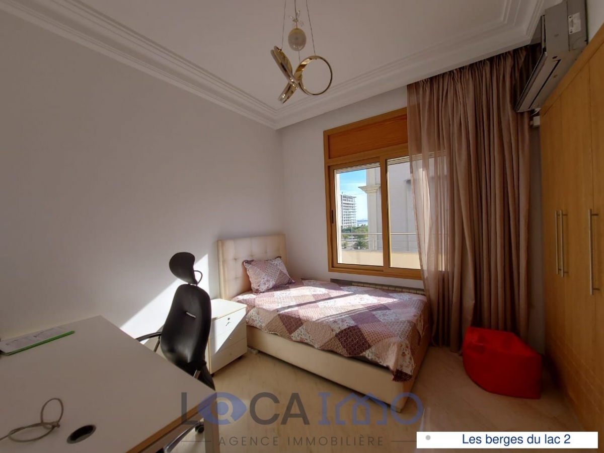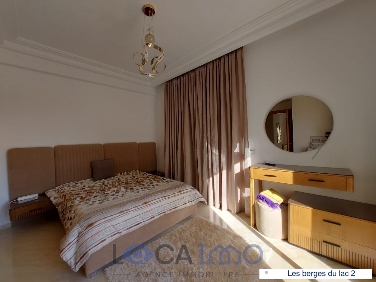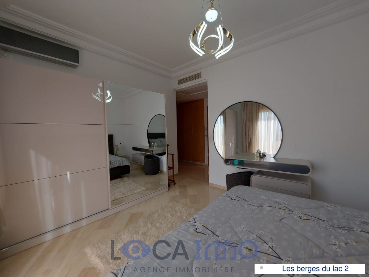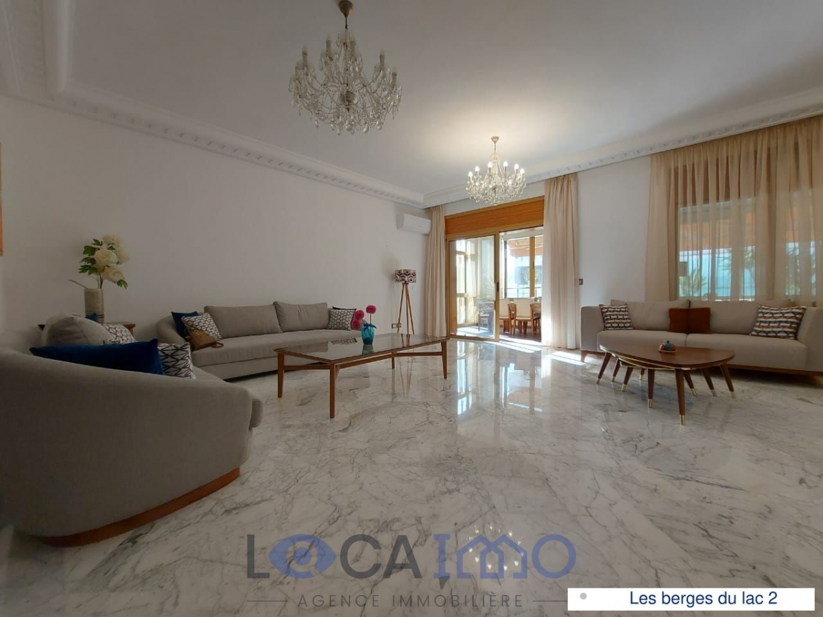 Loca Immobilière vous propose à la location un appartement meublé aux Berges du Lac 2, de très haut standing, d’une superficie d’environ 300 m², situé au sein d’une petite résidence de type R+3, calme et sécurisée, avec seulement deux appartements par palier.